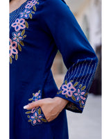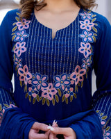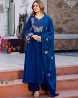 Azure Blue Linen Cotton Threadwork Festive Suit