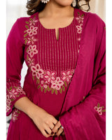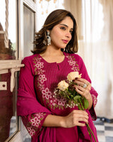 Berry Blossom Linen Cotton Threadwork Festive Suit