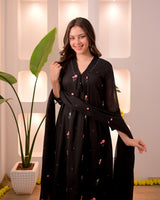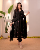 Step into effortless elegance with our Mul Cotton A-line Suits, crafted for comfort and grace. Made from soft, breathable mul cotton, these suits keep you cool while the intricate thread embroidery adds a touch of timeless charm.