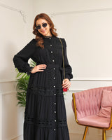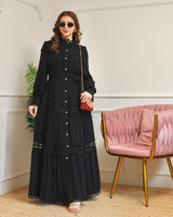 Black Charm Schiffli Flared Cotton Dress