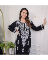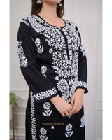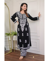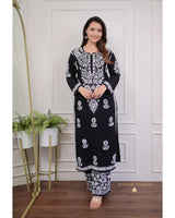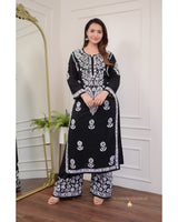 Black Cotton Chikankari Kurta Palazzo Set