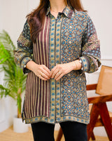 Blue Ajrakh Mehroo Stripes Muslin Silk Shirt