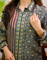 The classic Ajrakh detailing adds a beautiful handcrafted touch, while the contemporary shirt design keeps it stylish and versatile. Wear it loose for that relaxed, easy vibe or tuck it in for a sharp, structured look β either way, itβs a statement.