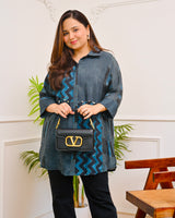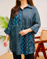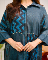 Blue Black Geometric Striped Muslin Silk Shirt