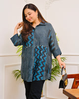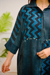 The classic Ajrakh detailing adds a beautiful handcrafted touch, while the contemporary shirt design keeps it stylish and versatile. Wear it loose for that relaxed, easy vibe or tuck it in for a sharp, structured look β either way, itβs a statement.