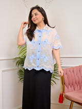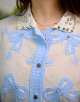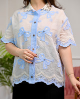 Blue Bow Bliss Diamond Threaded Shirt