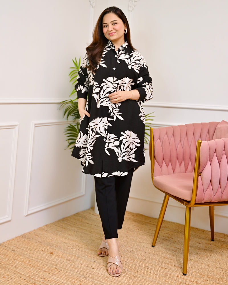 Crafted in premium cotton-silk that feels soft on the skin yet carries a subtle sheen for that polished look. You can pair it up with Pants, Trousers or Skirts or wear it as it is. Can style with waist belt.