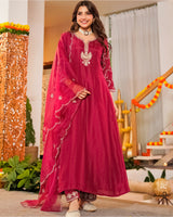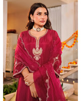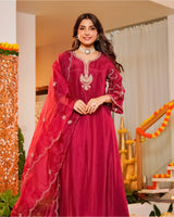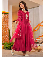 Crimson Handwork Chanderi Silk A Line Festive Suit