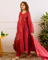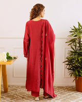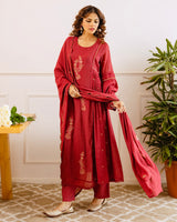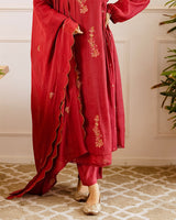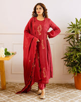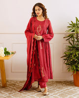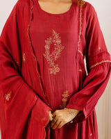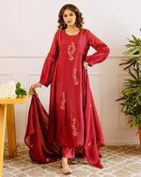 Crimson Noor Handwork Mul Chanderi A Line Suit
