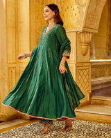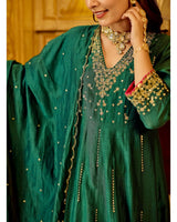 Emerald Noor Handwork Mul Chanderi Festive A Line Suit