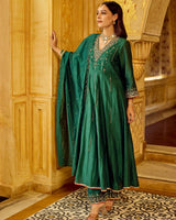 Color: Emerald Green, Intricate Hand Embroidery