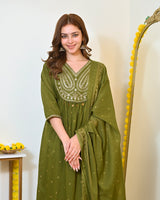 Green Paisley Handwork A Line Mul Cotton Suit