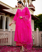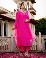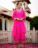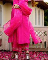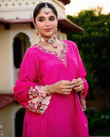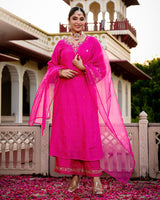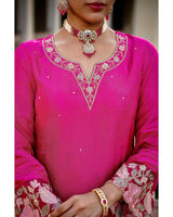 Gulabi Pink Noor Handwork Chanderi Silk A Line Festive Suit