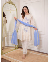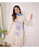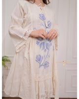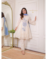 Featuring Beautiful A-line Pakistani Suit Set which is crafted with finest schiffli, lace work and hand embroidery all-over.