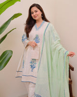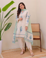 Ivory Blue Bloom Pakistani Tulip Cotton Suit