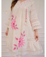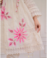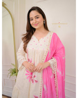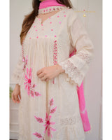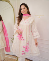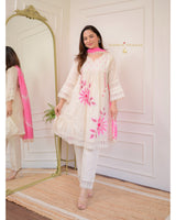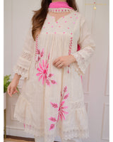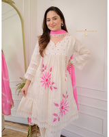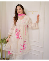 Featuring Beautiful A-line Pakistani Suit Set which is crafted with finest schiffli, lace work and hand embroidery all-over. It is must've for this summer season.