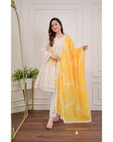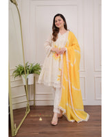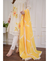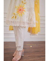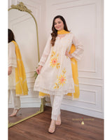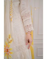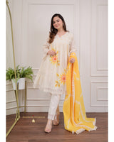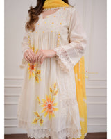 Ivory Yellow A-line Handwork Pakistani Suit
