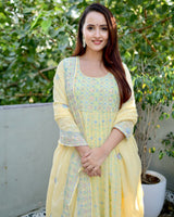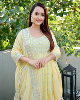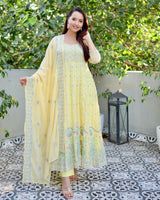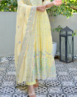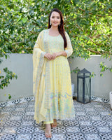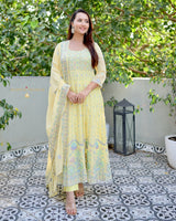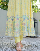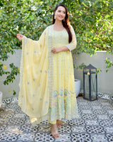 Lemon Yellow Handwork Georgette Anarkali Suit