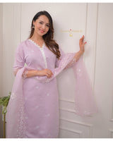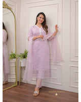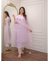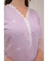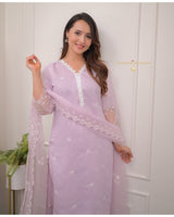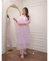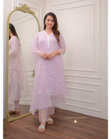 The intricate Organza lace detailing around adds a touch of elegance, while the beautiful embroidered floral buttas exude a sense of sophistication.