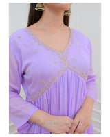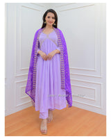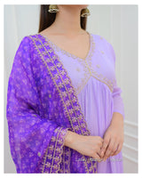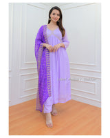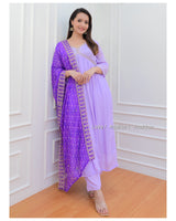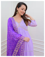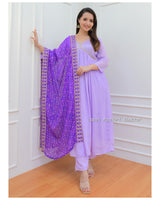 Lilac Purple Bandhani Dupatta Chinnon Anarkali Suit