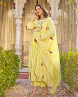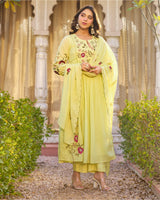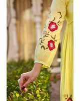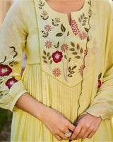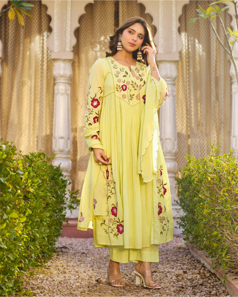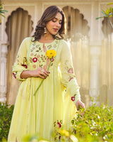 Lime Mehreen Mul Cotton A Line Threadwork Festive Suit