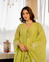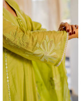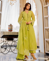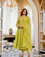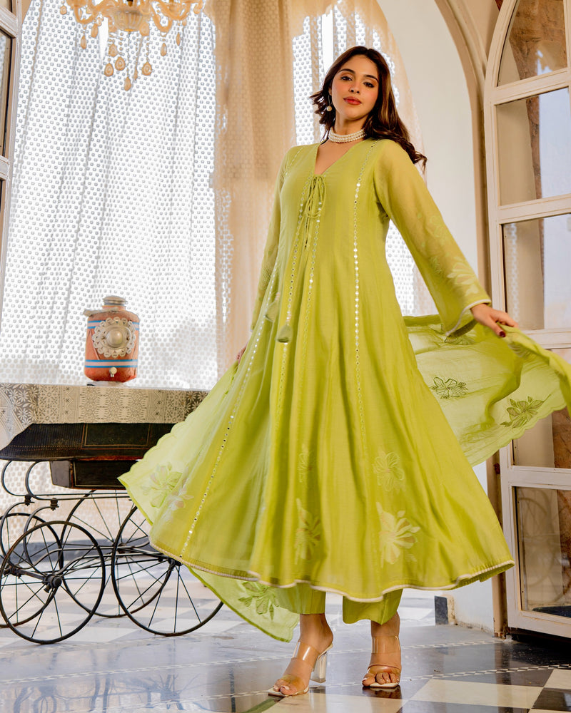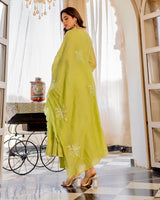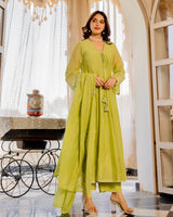 Lime Zahra Gulbahar Mul Chanderi A Line Festive Suit