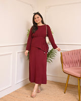 Our Woollen top & skirt co-ord is designed to keep you warm while looking effortlessly refined. The asymmetric layered top, tie-detail waist and sleek straight skirt come together to create a silhouette that’s cozy, chic and perfect for your everyday winter moments.❄️