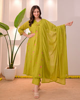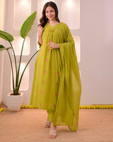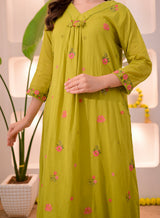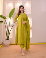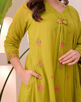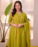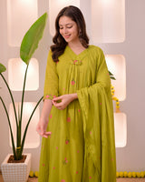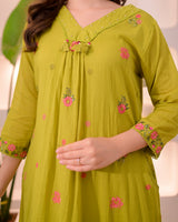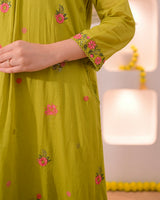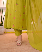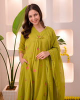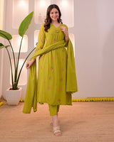Mehendi Mist Threadwork Mul Cotton A Line Suit