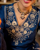 Midnight Blue Muse Handwork Chanderi Silk Festive Suit