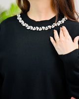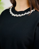 This design has diamond embellishments on the neckline, and it hugs just right while giving you all-day comfort.