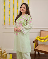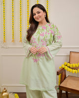Misty Mint Floral Threadwork Mul Cotton Co-ord