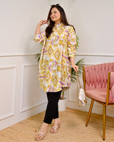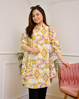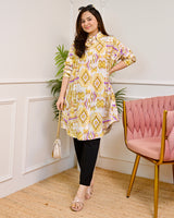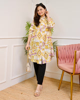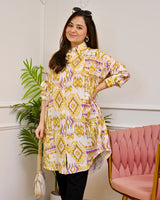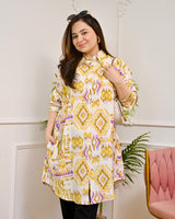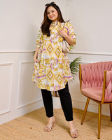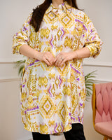 Mustard Lilac Ikat Charm Cotton Silk Tunic