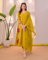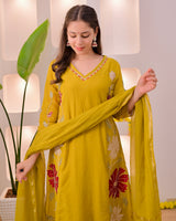 Mustard Mehfil Mul Chanderi A Line Threadwork Suit