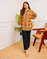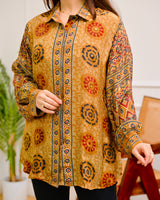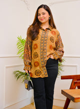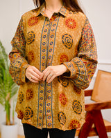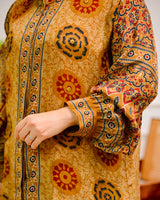 Mustard Mosaic Ajrakh Muslin Silk Shirt