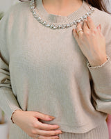 This design has diamond embellishments on the neckline, and it hugs just right while giving you all-day comfort.
