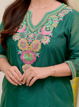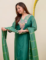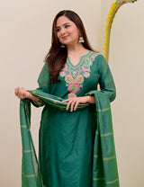 Opal Green Handwork Mul Chanderi Festive Suit