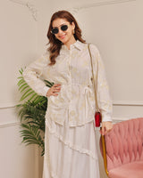 These easy-breezy, flowy skirt co-ord sets are crafted with sequin and thread embroidery.