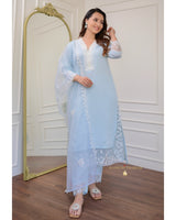 Featuring Beautiful Pastels Suit Sets in Cotton, crafted with intricate thread embroidery on Organza which gives very minimal and sophisticated look. Decorated with finest lace detailing.