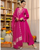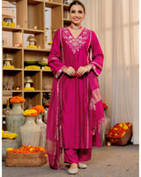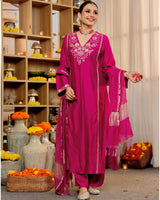 Rose Pink Radiance Handwork Chanderi Silk Festive Suit