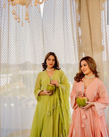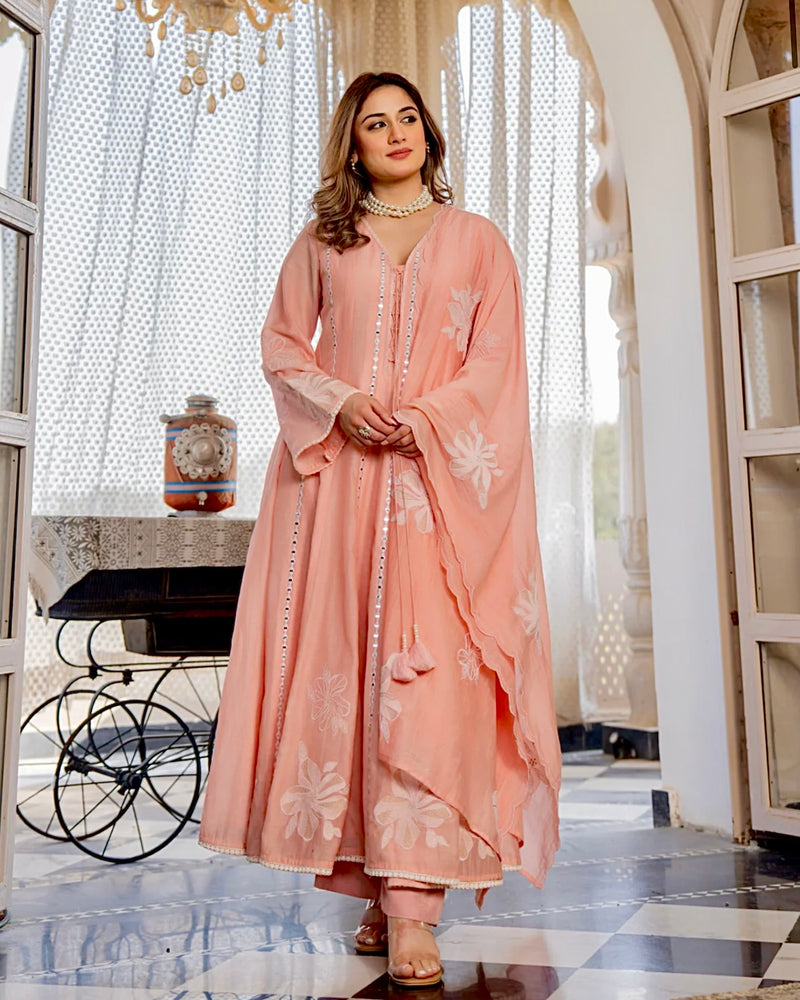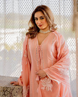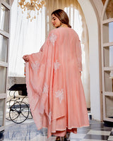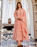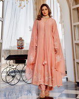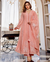 Rosy Peach Gulbahar Mul Chanderi A Line Festive Suit