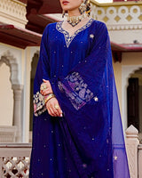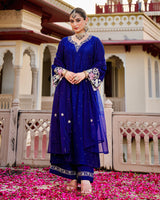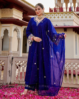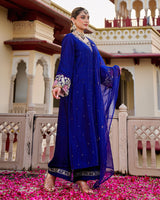 Royal Blue Noor Handwork Chanderi Silk A Line Festive Suit