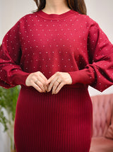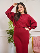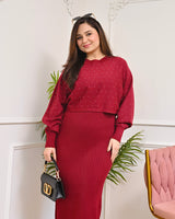 Ruby Merlot Winter Woollen Midi Dress