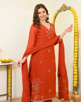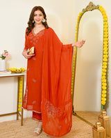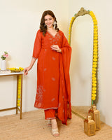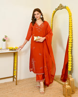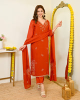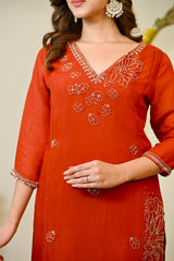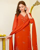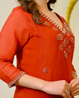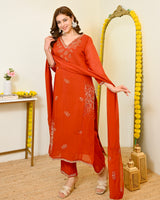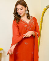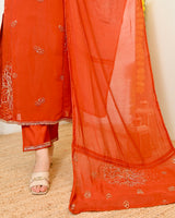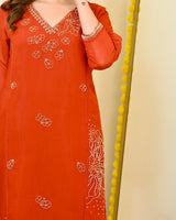 Color: Saffron Orange, Intricate Hand Embroidery