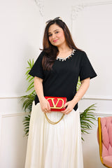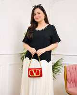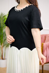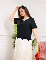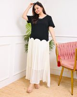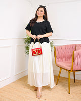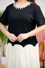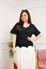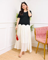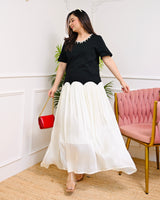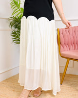 A beautifully flowy silhouette that moves with grace, with a classic black & ivory palette that never goes out of style.