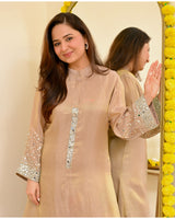 Sparkling Champagne Premium Tissue Silk Handwork Kurta Set