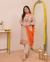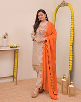 Sunkissed Ivory Chanderi Silk Handwork Festive Suit