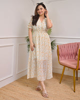 This flowy floral dress is designed to move with you through it all — from early morning school runs to relaxed coffee dates and everything in between. Crafted in a lightweight, breathable fabric, it feels soft on the skin and effortless to wear all day long.