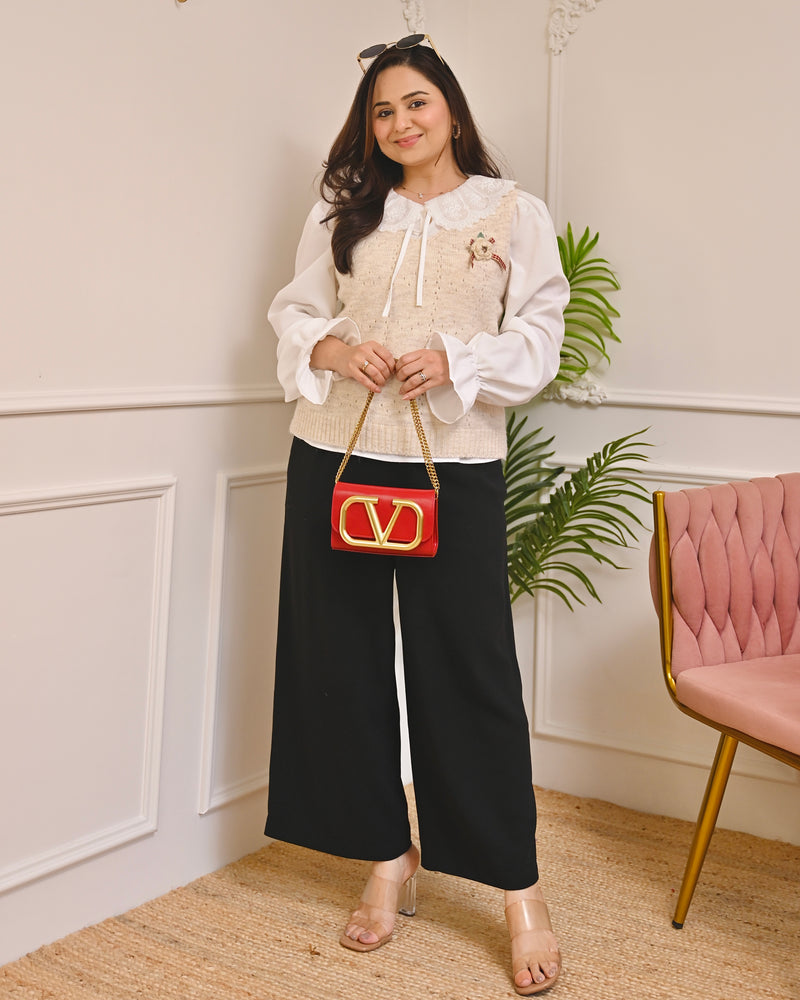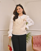 It comes with a detachable white shirt, giving you endless styling options — pair the sweater with any tee/shirt or style the classic white shirt on its own.